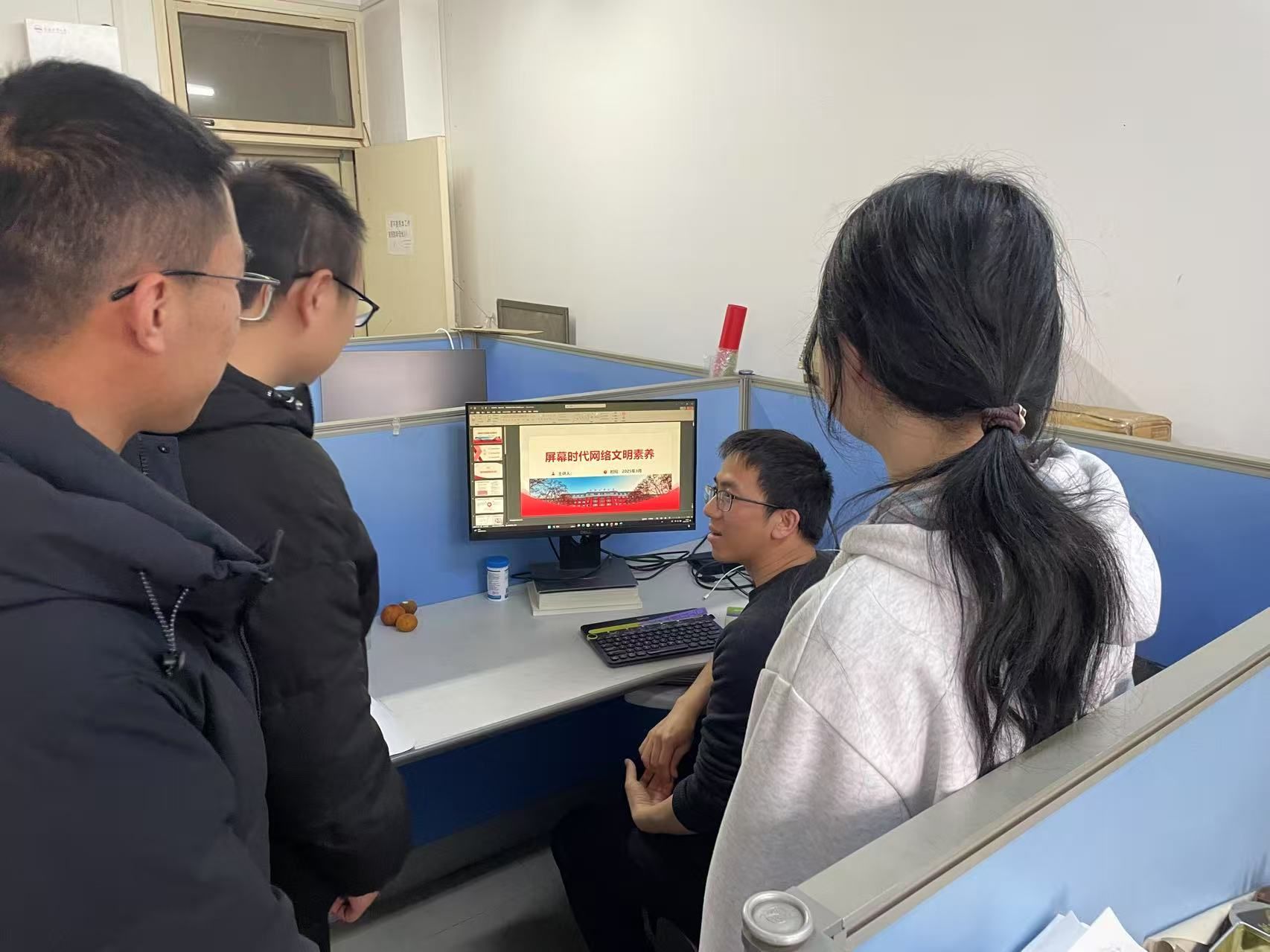 2025 312日,机械设计系教工党支部党员导师,以分组宣讲+案例拆解形式,在各研究生课题组开展屏幕时代网络文明素养专题宣传活动,活动围绕风险防范、素养提升、行为规范三大核心,内容贴合研究生日常上网场景,现场互动频繁,学习效果显著。