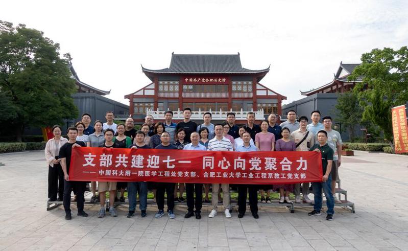工业工程系教工党支部和安徽省立医院医学工程处党支部以“支部共建迎七一,同心向党聚合力”为主题,赴中国共产党合肥历史馆开展“院校共建拓展学”活动,重温合肥人民在中国共产党领导下创造的不朽功勋和光辉业绩,感悟初心使命,弘扬建党精神,汲取奋进力量。合肥工业大学工业工程系教工党支部教师和研究生代表、医学工程处党支部全体党员、发展对象共40余人参加活动。