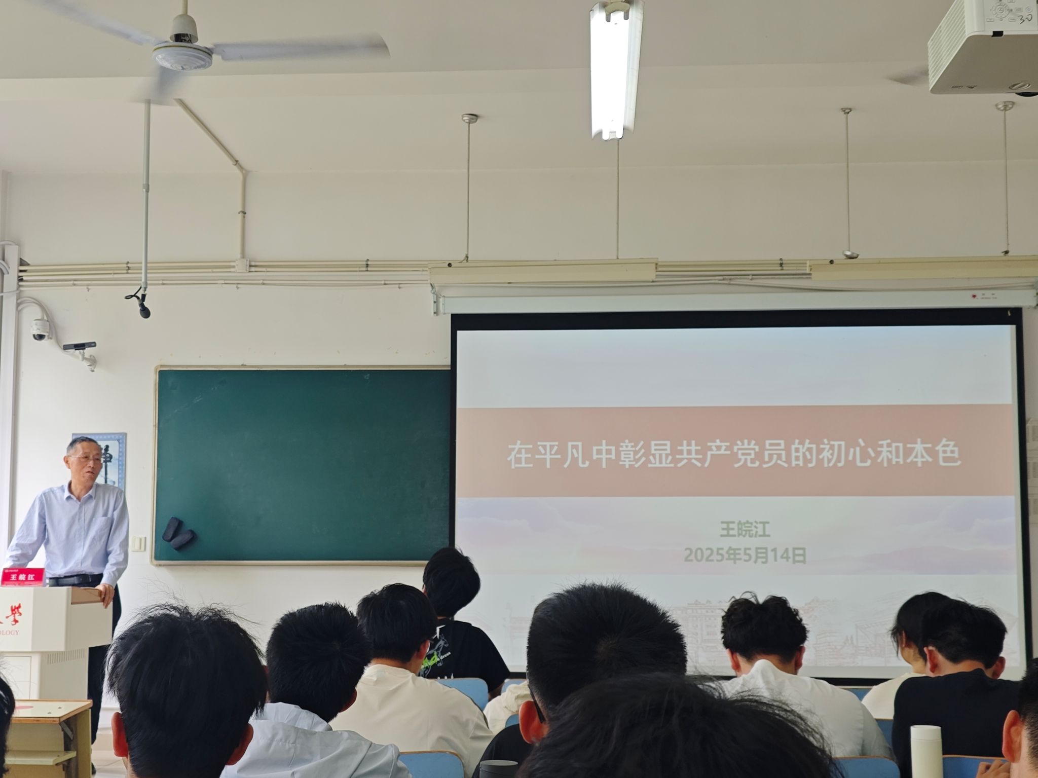 王皖江以“在平凡中彰显共产党员的初心和本色”为题讲授专题党课。通过我校优秀共产党员坚守科研一线、扎根西部支教等典型案例,结合自身经历,深情讲述老一辈工大人扎根教育、矢志报国的奋斗历程。他提出新时代青年要践行“四个经得起”:坚定理想信念经得起时间考验,淡泊名利经得起利益考验,迎难而上经得起困难考验,坚守底线经得起风险考验,号召学员以工业报国精神书写青春答卷。