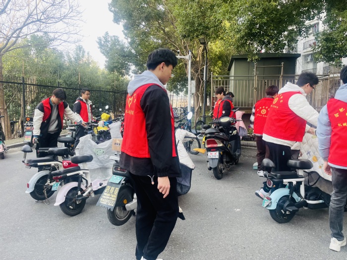 研究生志愿者在屯溪路校区开展“学习雷锋精神,争做时代青年”志愿服务活动,本次活动以清洁校园环境、维护非机动车摆放秩序为主要内容。