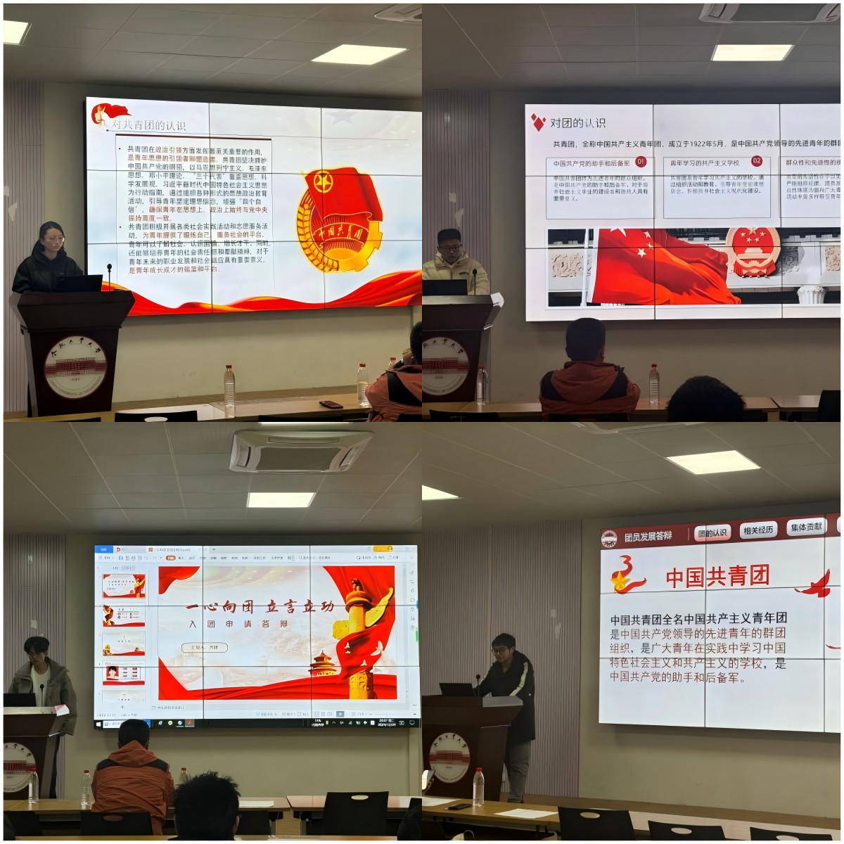 经个人申请、团支部推荐、团校培训、院团委审核等环节,冯家烨等40名同学进入此次答辩。会上,入团积极分子们围绕对共青团的认识与入团动机、个人学习与实践情况以及先锋模范作用的发挥等方面进行详细阐述,表达了自己强烈的入团决心与深刻的思想认识。他们激情饱满,充分展现了当代青年积极向上的精神风貌和对共青团的向往与热爱。