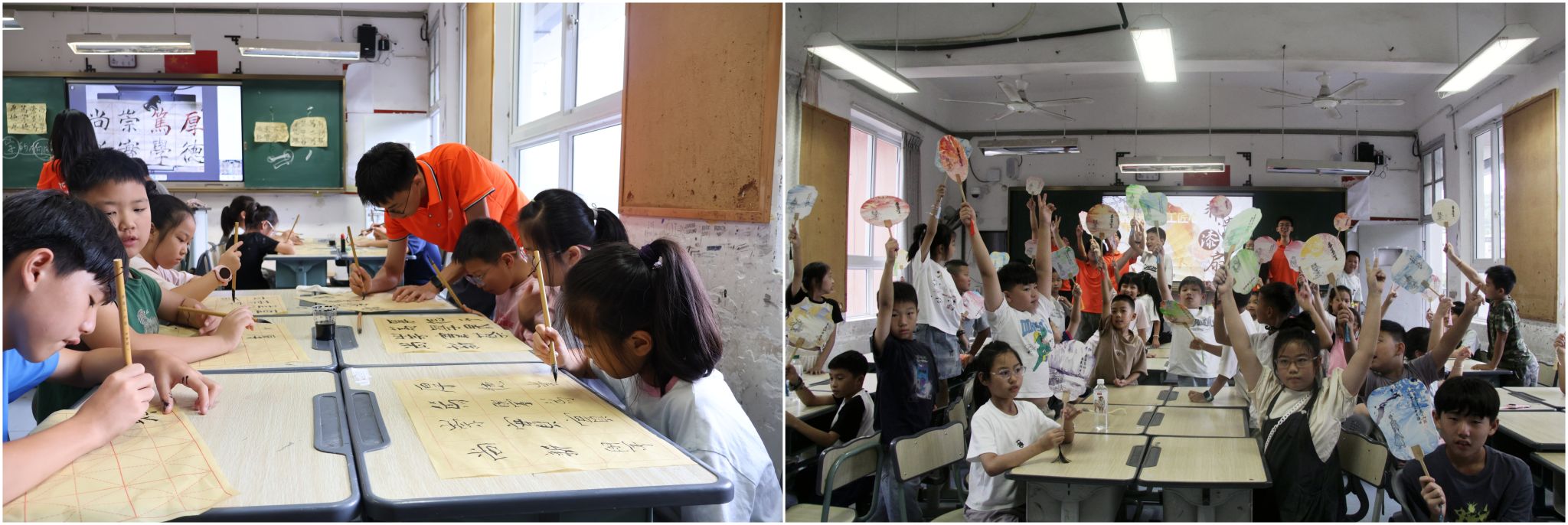 在植物标本的脉络里,珍藏着童心童趣的印记;于毛笔挥毫的游走间,晕染出华夏文明的深邃;借拓印技艺的摩挲时,触摸到非遗文化的肌理;在漆扇绘制的流转中,融汇了对自然色彩的领悟,孩子们在传统文化的浸润里,将对美的感知,深深刻印心底。在军事科普活动中,孩子们感受到国防力量的日益强大,强国强军的信念在心中澎湃激荡;在红色教育课堂上,孩子们用心聆听革命先辈的英勇壮举,红色基因在血脉中赓续传承。爱国情怀,如种子般深植心田,在新时代的阳光雨露下,生根发芽,茁壮成长!