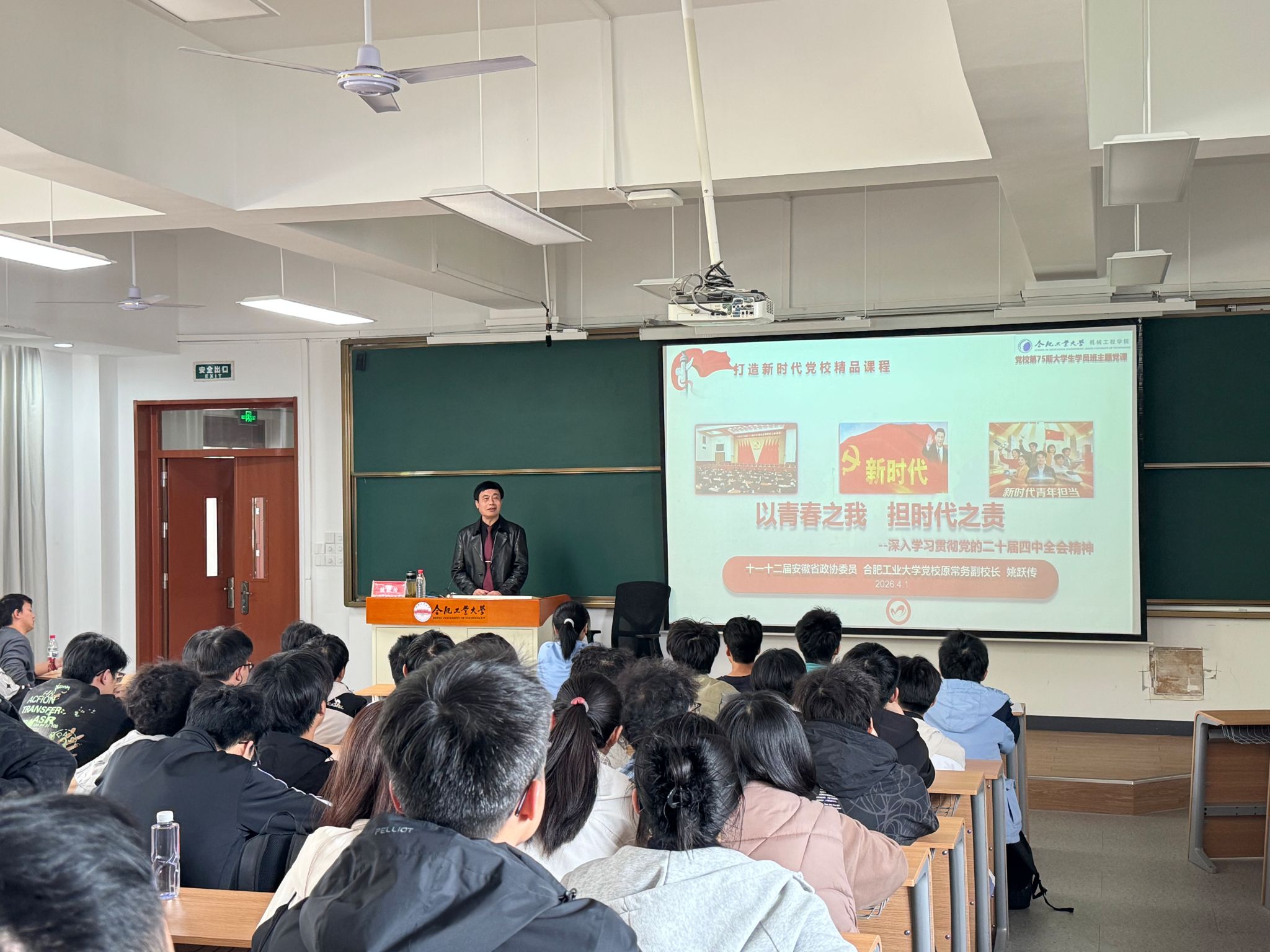 党校于2026年4月1日举办分党校第75期大学生入党积极分子专题报告会,邀请十一十二届安徽省政协委员、合肥工业大学党校原常务副校长姚跃传作了题为《以青春之名赴强国之约——深入学习贯彻党的二十届四中全会精神》的报告。