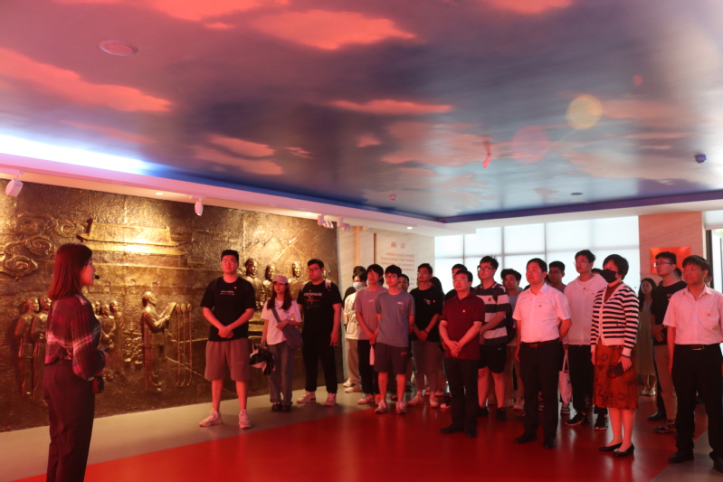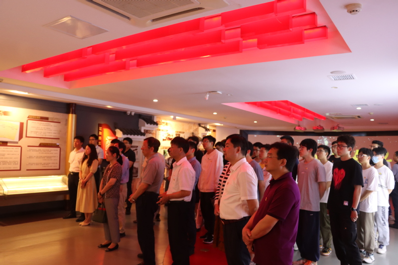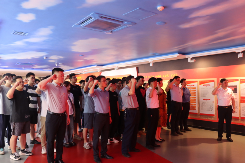 参观学习结束后,师生党员面对党旗,在星空娱乐