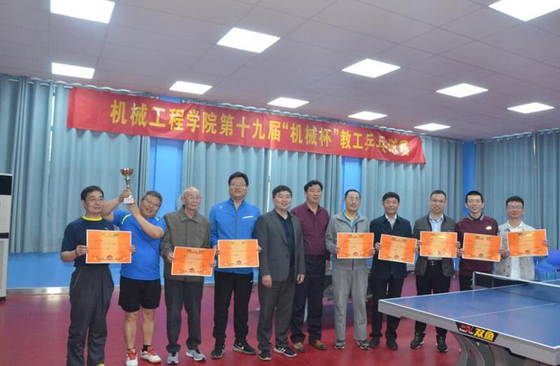 教职工积极进取的精神风貌和强烈的集体荣誉感。参赛教职工精湛的球技、出色的发挥,扣人心弦、精彩纷呈,博得在场观众的热烈掌声和阵阵喝彩声,比赛现场欢声笑语。平时沉浸于教学科研中的各位老师抓住这一难得的机会,在挥汗如雨的比赛间隙相互问候、交流、攀谈,身心得到了彻底的放松。经过六轮紧张激烈的角逐,男子团体冠军由设计1队摘得,元老队荣获亚军,机关队、摩擦所队、工程图学队、机电队、设计2队、真空队分获团体三至八名。刘正士勇摘男子单打冠军,女子单打冠军由柴畅获得。张显东处长、校总务部左登发副部长为获得团体前八名的参赛队颁奖。