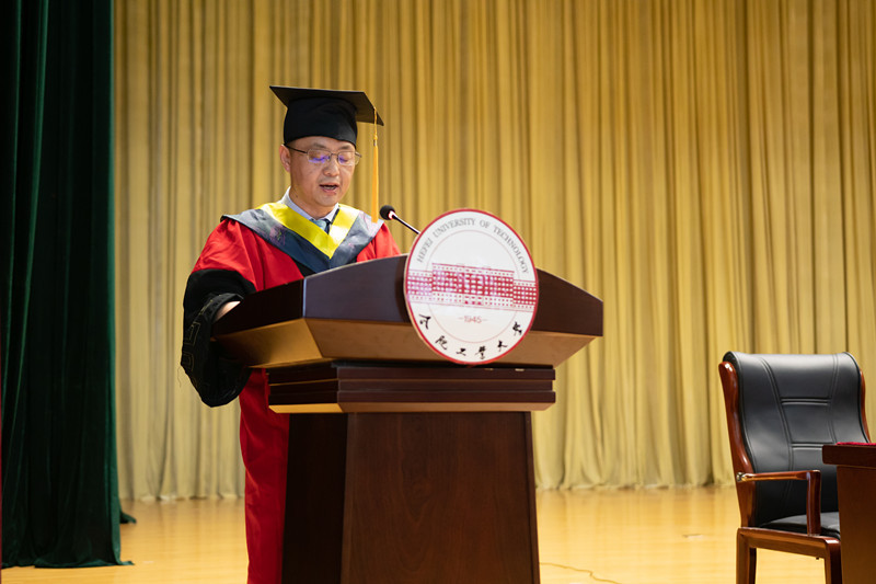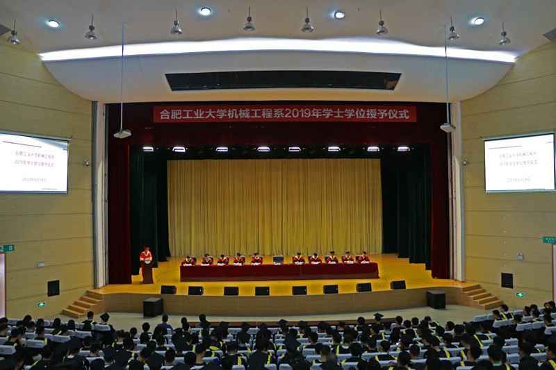 学位委员会副主席、书记韩江老师,宣城校区学生工作办公室主任陈发祥老师,汽车与交通工程学院学位委员会委员、副院长卢剑伟老师,机械设计工程系主任王勇老师,机械电子工程系主任曾亿山老师,机械制造工程系副主任唐火红老师,真空与过程装备工程系唐志国老师,制冷与低温工程系副主任唐景春老师以及机械工程系教工党支部书记刘勇老师出席仪式。同时参与仪式的还有机械工程系教师代表以及2019届全体本科毕业生及部分学生家长。仪式由星空娱乐