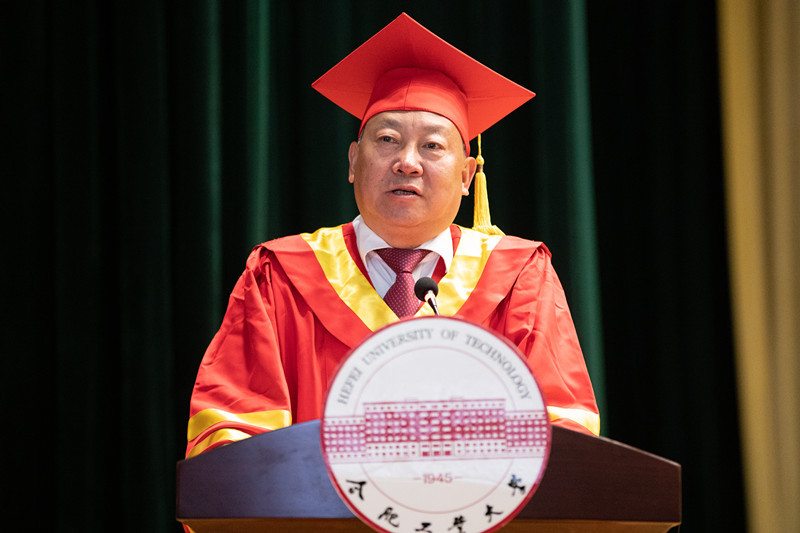 最后,陈鸿海老师代表学校向顺利获得学士学位的机械工程系2019届本科生表达了最诚挚的祝贺和最美好的祝愿。并从四个方面对机械学子提出希望:第一,志存高远,树立远大理想;第二,热爱祖国,勇担时代重任;第三,锤炼品德,勇于砥砺奋斗;第四,懂得感恩,积极回报社会。