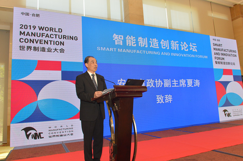2019年9月23日,2019世界制造业大会“智能制造创新论坛”在合肥翡翠湖迎宾馆隆重举行。本次论坛以“转型升级,融合创新”为主题,针对智能制造领域的热门议题及前沿技术,设置主题报告、邀请报告两个环节,探讨未来中国智能制造技术的发展路径,更好发挥政府、企业、高校的作用,推动新一代信息技术、人工智能与先进制造业的深度融合。安徽省政协副主席夏涛 、合肥市副市长朱策、合肥工业大学校长梁樑出席论坛并致辞,论坛开幕式由安徽省科学技术厅副厅长程雪涛主持。