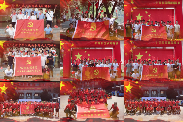 活动中,学院领导班子成员、11个教工党支部和15个学生党支部分别选取校内不同的典型建筑和国庆展板,积极与国旗同框、与欢度国庆入镜,向祖国母亲深情告白,齐声庆祝祖国母亲70周年生日快乐,祝福祖国繁荣昌盛。该院还将告白剪影制作成视频和推文,在该院网站门户、微信平台、QQ空间平台等进行了发布和推送,得到了校友和师生的广泛好评和大量转发。