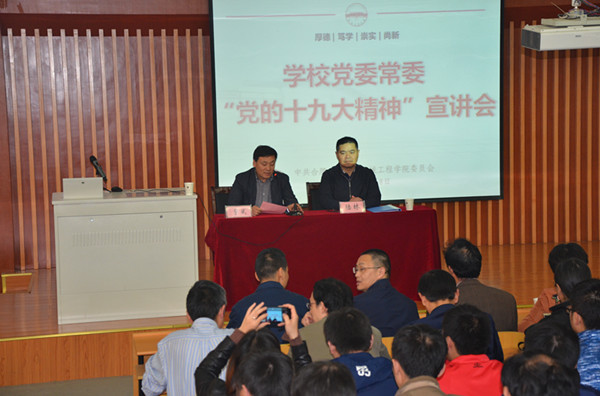 宣讲会后,学院党委对全体教职工和党员提出三点要求,一是:各支部和各位老师在整个学习过程中,要充分认识认真学习宣传贯彻党的十九大精神的重要意义,全面准确学习党的十九大精神。二是:在学习过程中,要把着力点聚焦到习近平新时代中国特色社会主义思想是党必须长期坚持的指导思想上. 三是:在学习过程中,要旗帜鲜明地用党的十九大精神统一思想、凝聚力量,做到不含糊,不放松。希望各位老师,各位党员认真消化陆林书记的宣讲,并在以后的学习生活中自觉学习“党的十九大”精神!