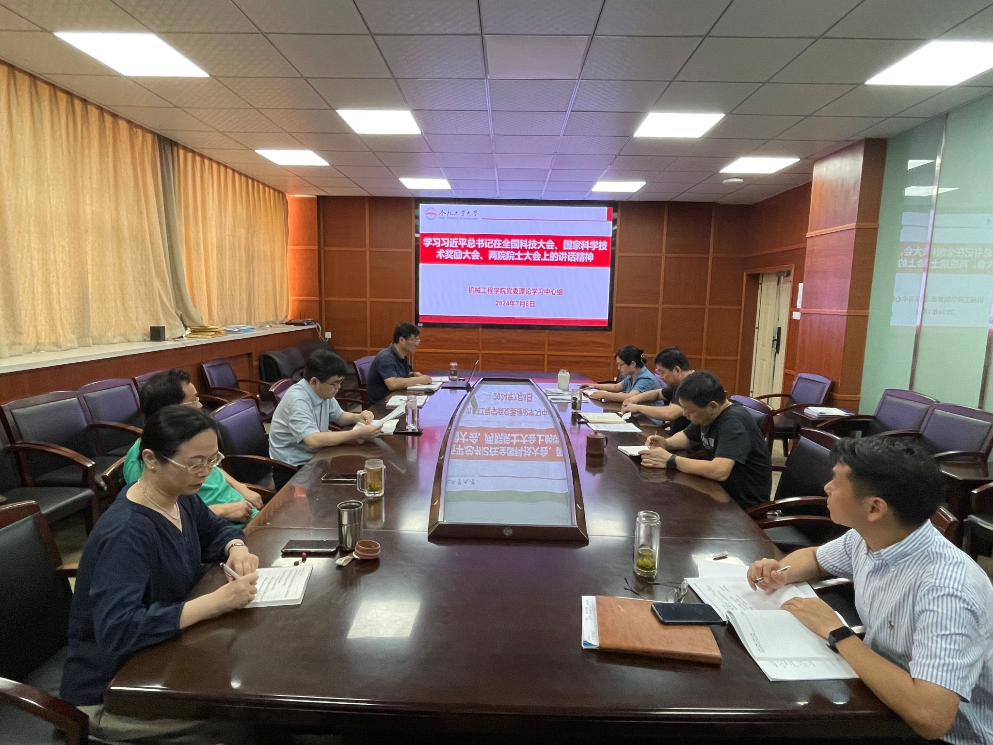 张显东书记领学了《关于认真学习领会习近平总书记关于全面加强党的纪律建设的重要论述 扎实开展党纪学习教育的通知》精神、习近平总书记在中共中央政治局第十四次集体学习时的重要讲话精神、习近平总书记在中共中央政治局第十五次集体学习时的重要讲话精神、习近平总书记在中央全面深化改革委员会第五次会议上的重要讲话精神、习近平总书记在中央军委政治工作会议上的重要讲话精神;蔡伟伟副书记领学了习近平总书记对防汛抗旱工作作出的重要指示精神、习近平总书记在青海考察时的重要讲话精神、习近平在宁夏考察时的重要讲话精神;马培勇副院长领学了习近平总书记在全国科技大会、国家科学技术奖励大会、两院院士大会上的讲话精神和习近平总书记致中国工程院建院30周年的贺信精神、习近平总书记致黄埔军校建校100周年暨黄埔军校同学会成立40周年的贺信精神。
