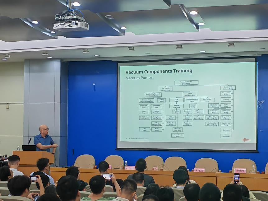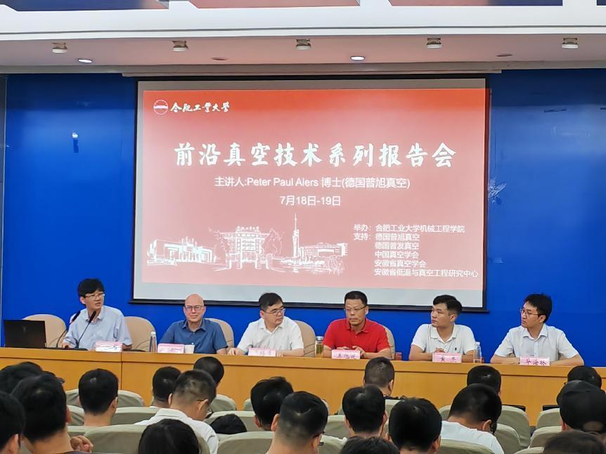 举办的“前沿真空技术系列报告会”在格物楼214报告厅顺利举行。作为合肥工业大学-普旭真空/普发真空合作协议的深入、继续落实合作内容,德国普旭真空著名真空专家Peter Paul Alers博士应邀来华、走进校园,开展为期两天的“前沿真空技术系列报告会”。除了学校师生,此次报告会吸引了来自近40家单位的200多位真空领域学者及行业专家参加。普旭真空、苏州迈为科技股份有限公司、安徽赛特新材有限公司、卓凌精密设备(合肥)有限公司为本次报告会的成功举办提供了支持。