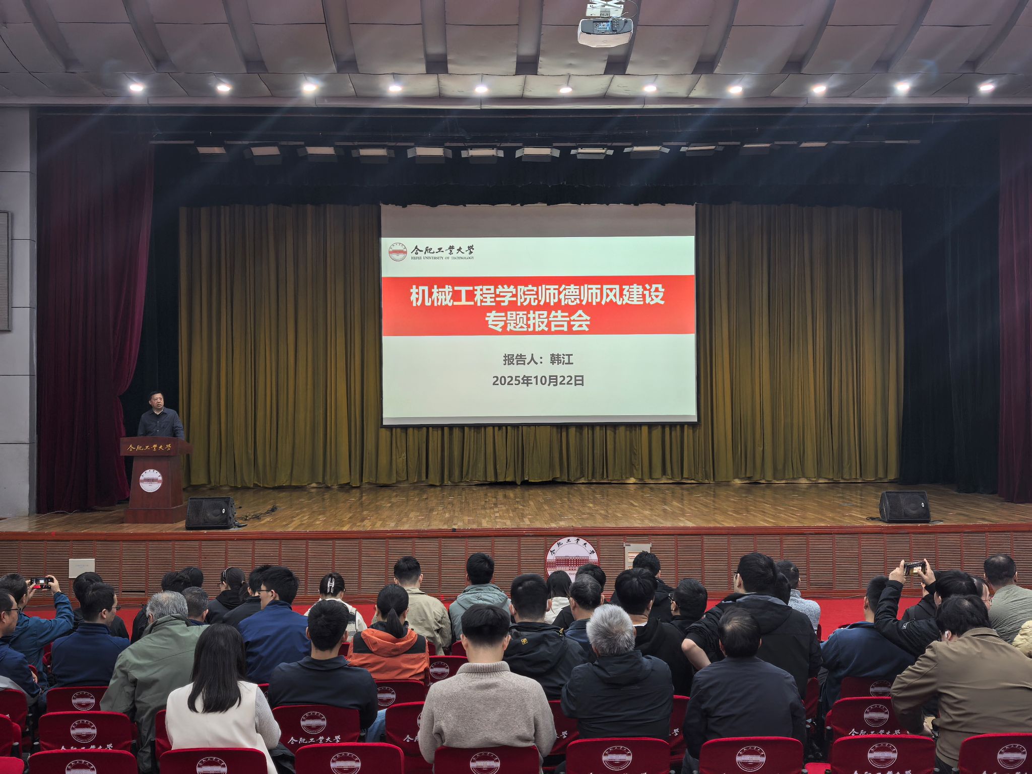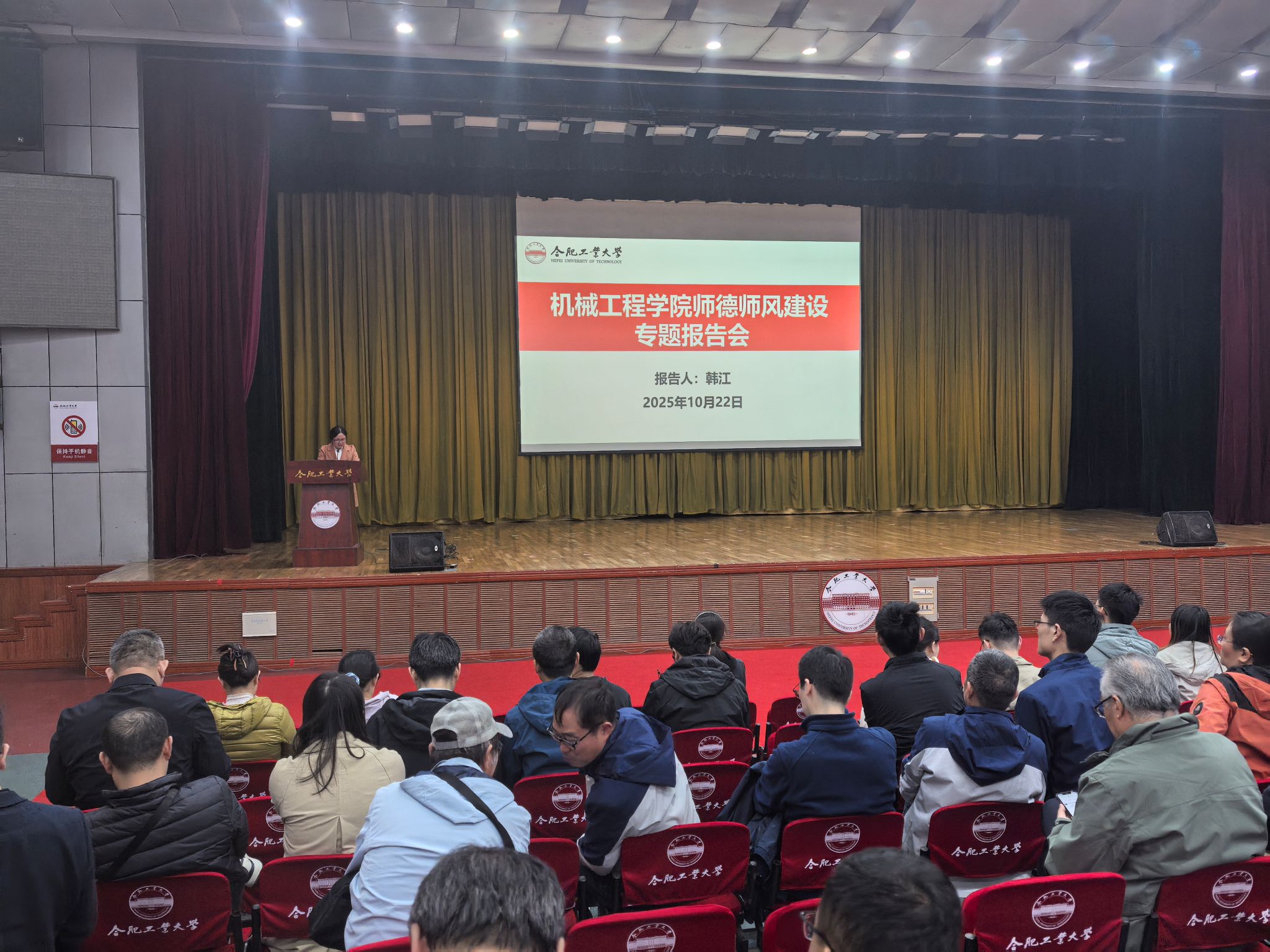 在斛兵礼堂成功举办了2025年第二场师德师风专题报告会。此次报告会特邀国务院特殊津贴专家、安徽省杰出人才、合肥工业大学斛兵学者韩江教授主讲,全院教师集中参加学习。报告会由学院党委副书记兼纪委书记蔡伟伟主持。