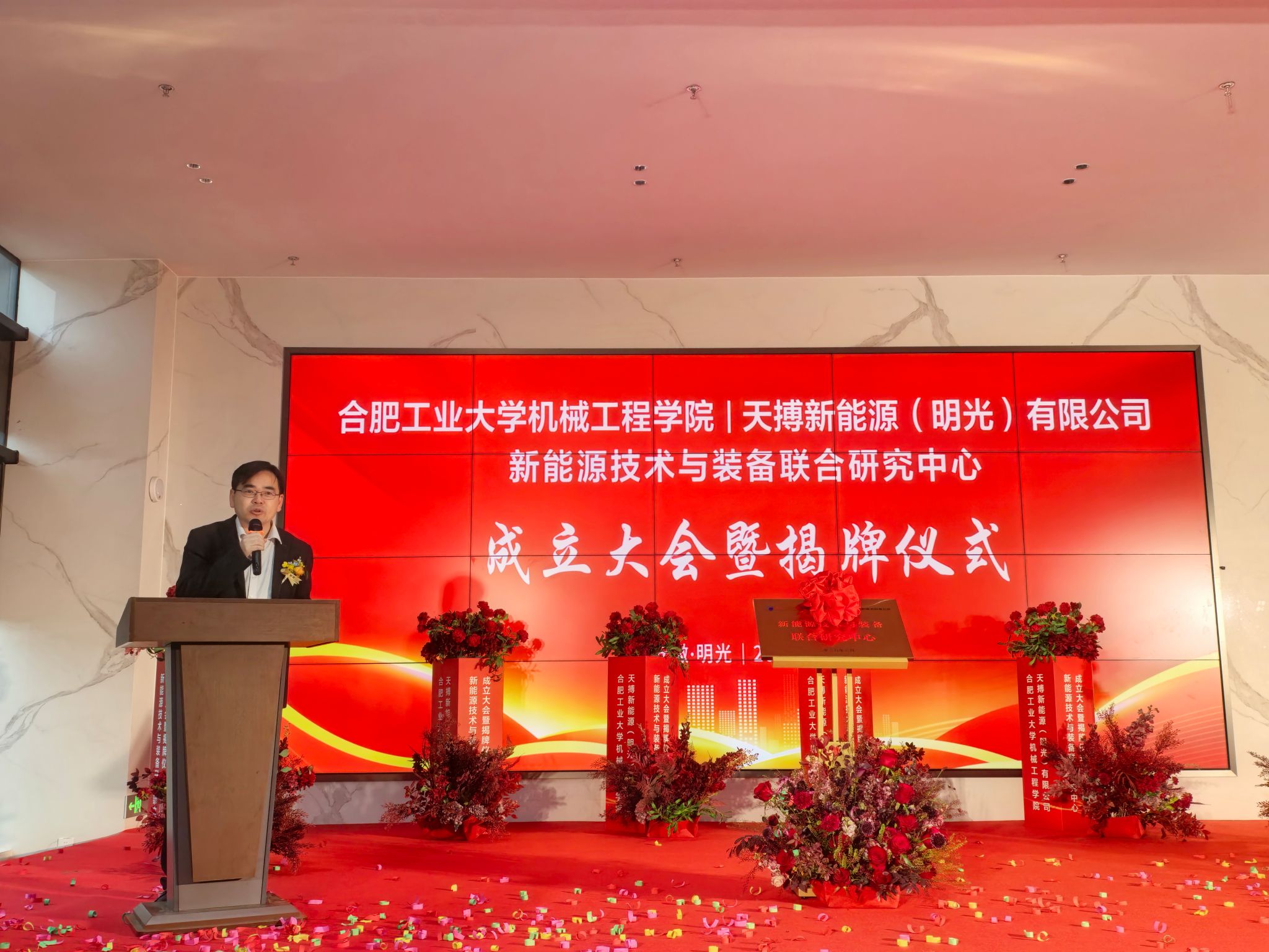 正处级组织员岳峰、副院长马培勇、教授专家代表,天搏新能源(明光)有限公司董事长黄娜及集团公司领导出席仪式。