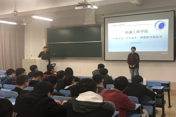 “以梦为马,不负韶华”2018-2019学年梦想班开班仪式在翡翠湖校区一教102举行。该院相关负责老师、学生会主要骨干以及全体梦想班成员参加开班仪式。