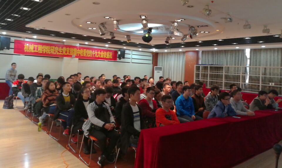 研究生支部党员于10月18日在格物楼316多功能厅集中观看了党的十九大盛况。 上午9点,观看直播活动准时开始。伴随着嘹亮的国歌声,全体学生起立,他们昂首挺胸,神情庄严。全体学生党员聚精会神地聆听了习近平总书记做的报告,并时不时地在笔记本上记下要点。