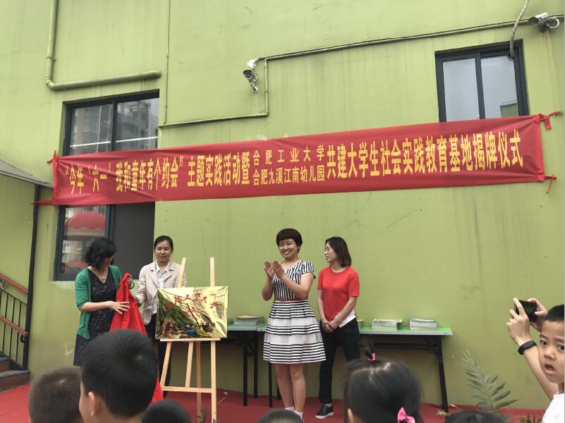 活动中,幼儿园园长首先致欢迎词,并向与会人员介绍了双方近些年来的合作开展工作的整体情况。随后,郑召丽向九溪江南幼儿园长期以来对学院多项工作的支持表示感谢,还具体介绍了后期活动开展的方向和计划,表达了对大学生志愿者们的期望和未来合作能够顺利进行的展望。期间,郑召丽与幼儿园园长共同为“合肥工业大学大学生社会实践教育基地”揭牌。