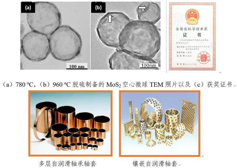 发展了多种新型纳米润滑添加剂(二硫化钼、石墨烯等),有效实现了关键机械运动部件(如自润滑滑动轴承轴套、内燃机活塞环-缸套)的减摩抗磨,并延长了润滑时效。实现了多种微观形态的二硫化钼的可控制备与靶向润滑、掌握了典型摩擦工况下的微观摩擦学机理。部分成果如发明专利纳米二硫化钼在润滑油中的分散技术等已经转让在相关企业应用,并获得2014安徽省自然科学二等奖。
