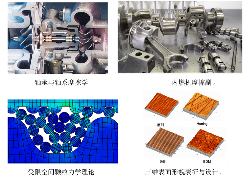 现代机电产品中包含许多重要的机械系统,如:轴承及轴系、制动盘-胎-路系统、内燃机及其子系统、高温超导磁悬浮轴承等。这些系统的摩擦学性能和能耗水平对整个机械系统至关重要。以机械系统节能(控制摩擦)、延寿(减小磨损)为目标,开展摩擦学基础理论、设计技术、实验及工程应用研究是研究团队长期以来的重要研究方向,结合以上研究对象在液固二相润滑理论、界面受限颗粒体行为与功能转化、面向性能的表面形貌设计与优化等方向取得了大量的研究成果。