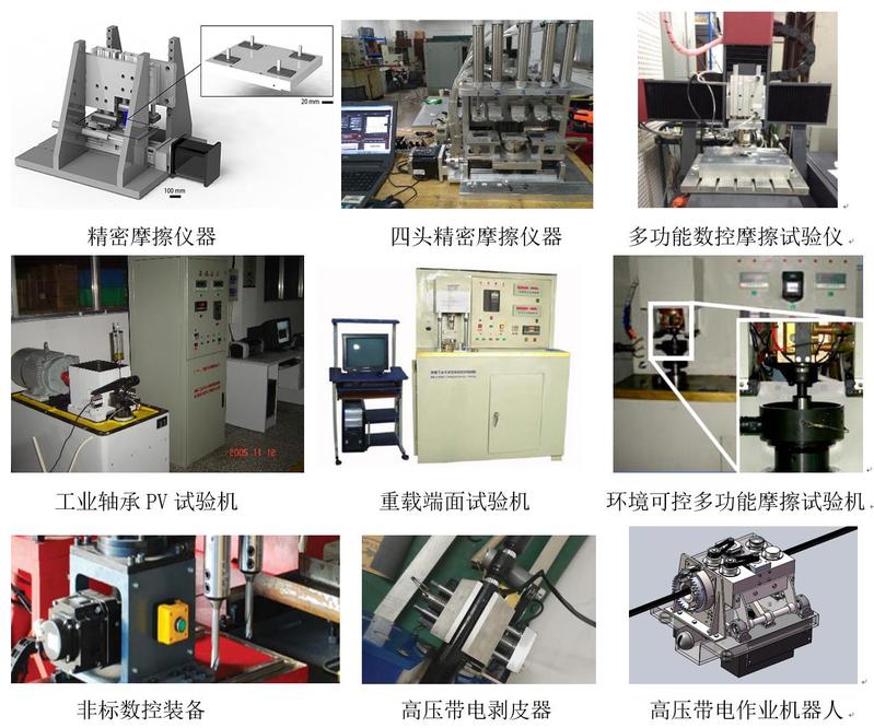 研发了包括端面、销盘、多轨迹、PV、往复式等摩擦磨损试验机、高速重负荷止推轴承试验机多个系列的测试装备。开发了一系列自制小型精密摩擦磨损试验机,可以进行高精度摩擦学测量,而且具有实时观测摩擦界面和下表面裂纹的能力,在国内外处于领先水平。测控软件独具特色,基于VC、VB以及LabVIEW等自主研发了一系列先进的专业测控软件。同时,我所还在板材成形、大型铝合金弯曲成形、自动化数控装备方向对外承接非标开发任务。相关设备已被国内诸多著名大型企业、研究所、高校等所使用,在业内得到认可。